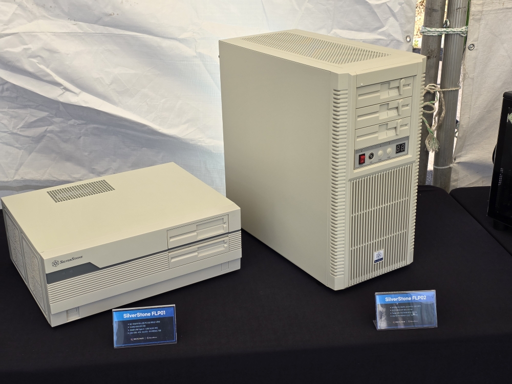 또한 레트로 콘셉트의 실버스톤 FLP 시리즈도 함께 전시됐으며, FLP01은 수평형 데스크톱 스타일을 현대적으로 재해석한 모델이며, FLP02는 이를 타워형으로 확장해 냉각 성능과 확장성을 강화한 제품으로 ‘Turbo’ 버튼을 통한 팬 최대 속도 제어 기능이 적용된 점이 특징이다.
