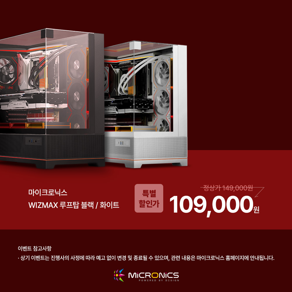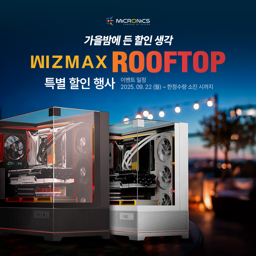 [2025년 9월 22일] 게이밍 기기 디자인·개발·제조 전문기업 한미마이크로닉스(대표 강현민, 이하 마이크로닉스)가 프리미엄 케이스 ‘WIZMAX 루프탑 시리즈’를 대상으로 할인행사를 진행한다.