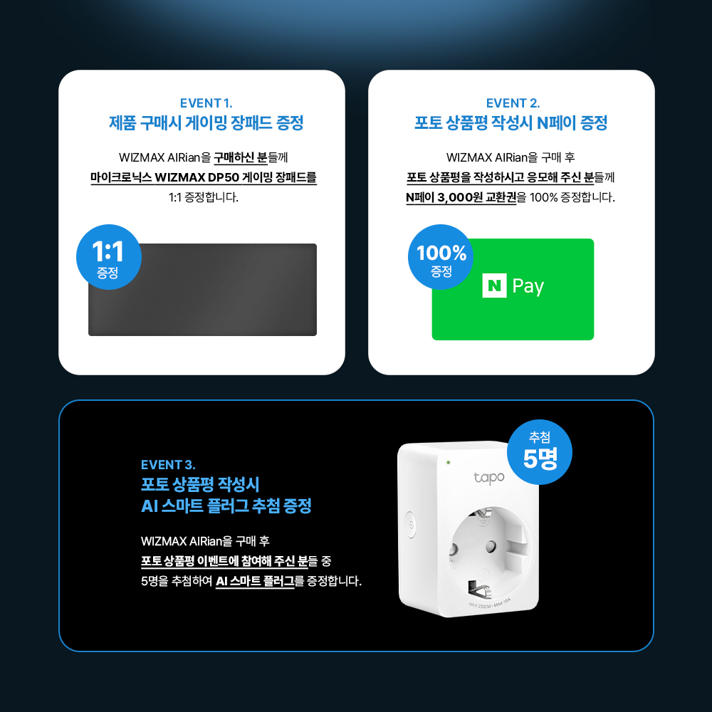 한편, 마이크로닉스는 에어리안 130 출시를 기념해 구매 고객을 대상으로 다양한 이벤트를 진행한다. 이번 행사는 10월 21일부터 11월 21일까지 한 달간 진행되며, 제품 구매 시 ‘DP50 게이밍 장패드’가 1:1로 증정된다. 또한 포토 상품평 작성 후 응모한 고객 전원에게 네이버페이 3천 원 교환권이 제공되며, 참여자 중 추첨을 통해 5명에게 ‘AI 스마트 플러그’가 추가로 증정된다.