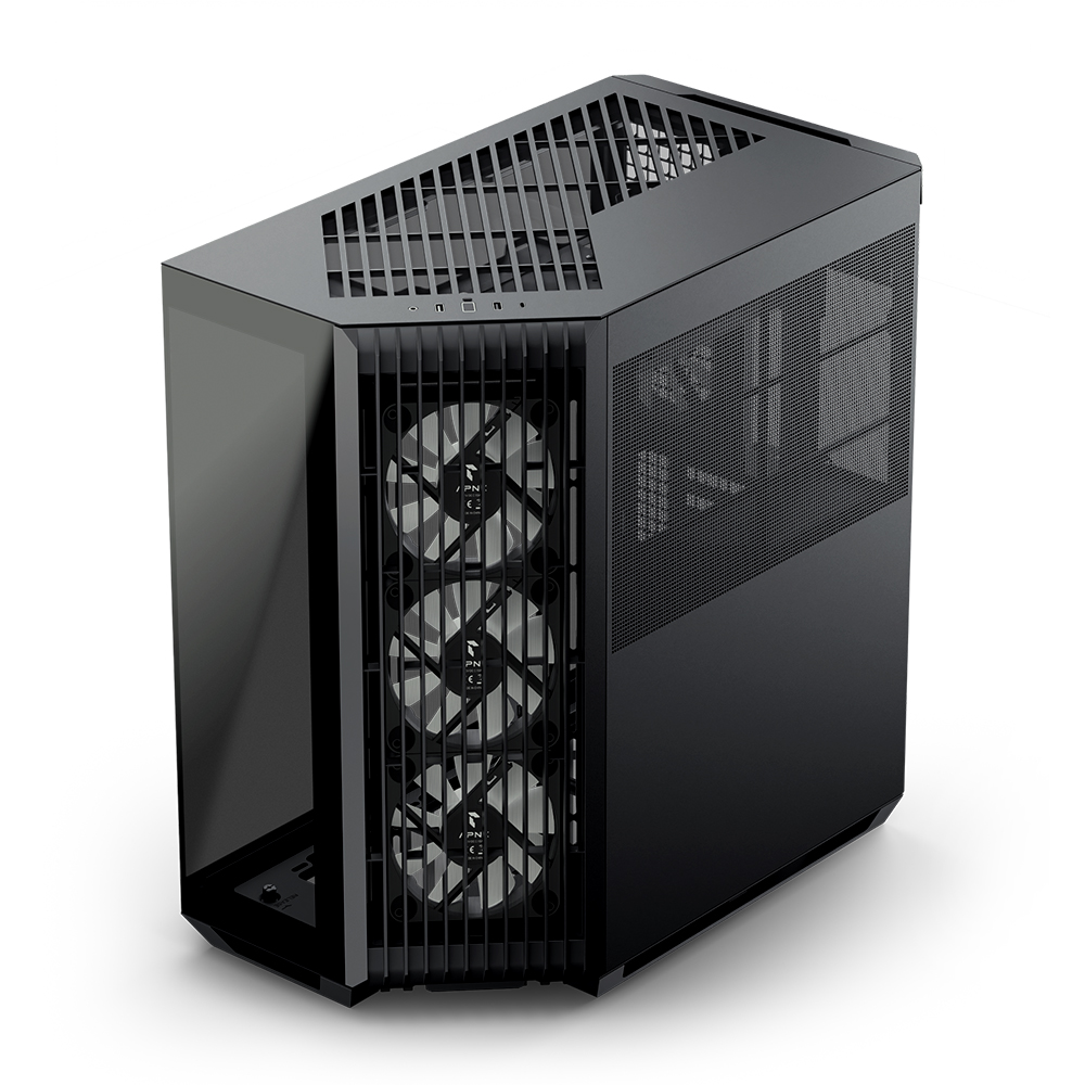 V1의 특징은 전면·측면으로 이어지는 파노라믹 강화유리 구조로 내부 시스템을 넓게 보여주는 개방감이다. 여기에 APNX가 새롭게 도입한 45도 각도로 설계된 패널을 더해 CPU와 GPU로 전달되는 공기 흐름을 자연스럽게 유도하고, 케이스 내부 전반의 열 순환 효율을 크게 끌어올렸다. 이 구조는 공기 흡입 경로를 확장하면서 강화유리의 개방감을 유지해 디자인과 성능을 잡았다.