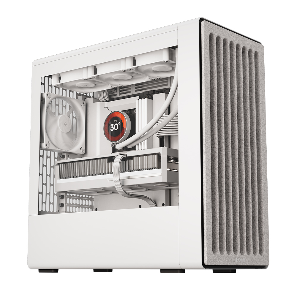 스토리지 구성은 최대 3.5형 HDD 2개, 2.5형 SSD 최대 4개까지 탑재할 수 있어 게이밍 시스템은 물론 크리에이티브 워크스테이션 구축에도 유리하다. 전면 I/O는 USB 3.2 Gen2x2 Type-C, USB 3.2 Gen1 Type-A 2개, 오디오 단자로 구성되어 다양한 주변기기와의 연결을 돕는다.