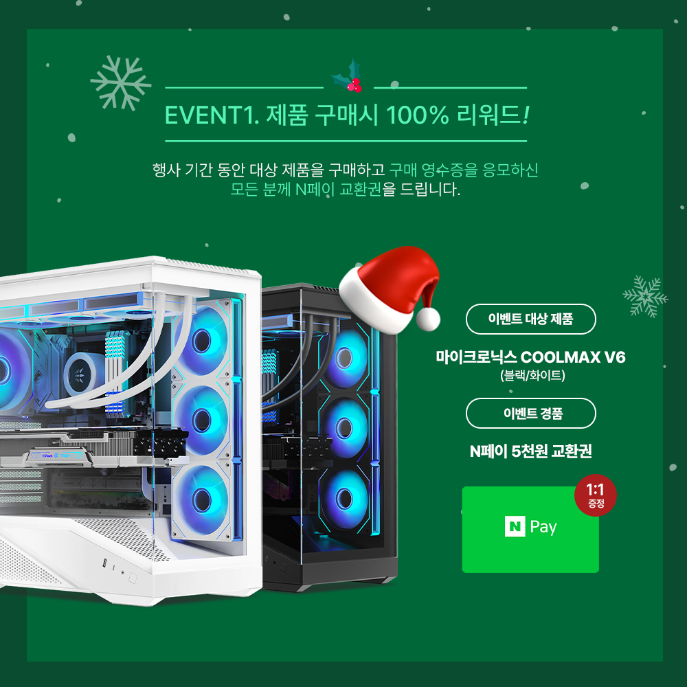 [2025년 12월 09일] 게이밍 기기 디자인·개발·제조 전문기업 한미마이크로닉스(대표: 강현민, 이하 마이크로닉스)가 연말을 맞아 미들타워 PC 케이스 COOLMAX V6(이하 쿨맥스 V6) 구매자를 대상으로 특별 사은 행사를 진행한다. 행사 기간은 2025년 12월 9일부터 12월 31일까지다.