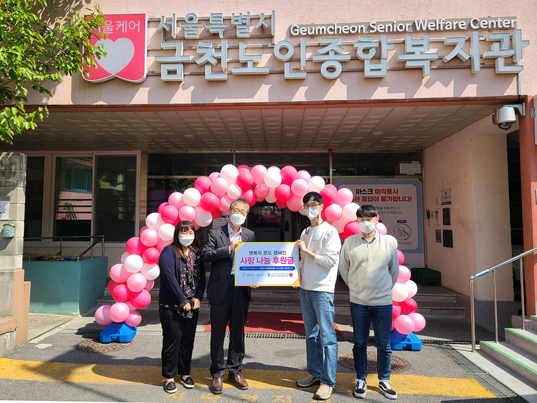 ▲ 마이크로닉스가 금천노인종합복지관을 찾아 후원금을 전달했다.