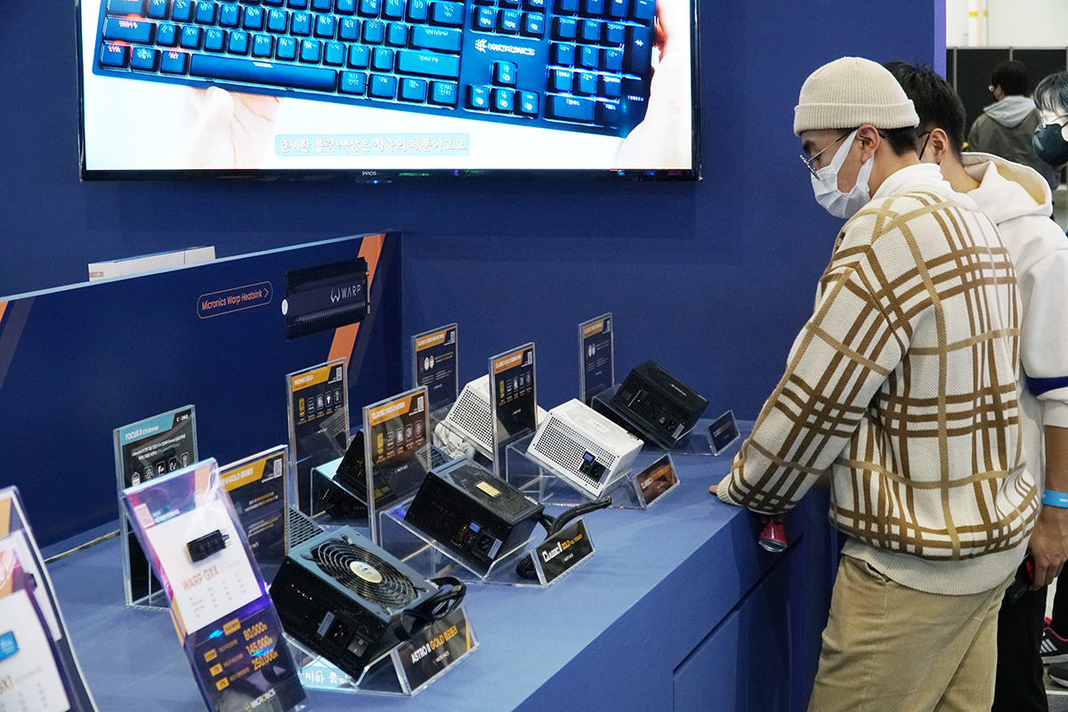 파워서플라이와 워프 NVMe SSD, 워프 실드 시리즈 M.2 SSD 방열판도 관람객을 맞았다. 먼저 지스타 2022를 통해 공개된 아스트로 II GD 1650W 풀모듈러 파워서플라이는 ATX 3.0 규격 및 고성능 시스템 등장 시기와 맞물려 관심을 받았다. 즈맥스 골드 시리드와 대한민국 대표 파워서플라이 중 하나로 손꼽히는 클래식 II 풀체인지, 클래식 II 골드 풀모듈러 시리즈도 전시장을 빛냈다.