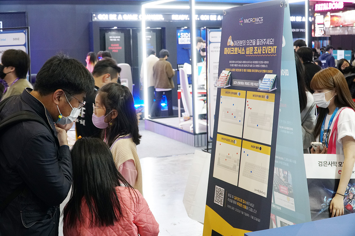 이어 다양한 게이밍 키보드와 마우스 등 입력장치에 대한 관심을 엿볼 수 있었다. 마이크로닉스는 행사장 내에 메카 ZK 시리즈 게이밍 키보드, 워프 WK 시리즈 게이밍 키보드, 모프 MK 시리즈 게이밍 키보드 외에 EX580 시리즈 등 다양한 게이밍 키보드를 체험할 수 있도록 꾸몄다. 이 외에도 메카 ZM 시리즈 게이밍 마우스, 워프 WM 시리즈 게이밍 마우스, 모프 MM-1 게이밍 마우스 외에 다양한 유무선 마우스도 경험할 수 있었다.