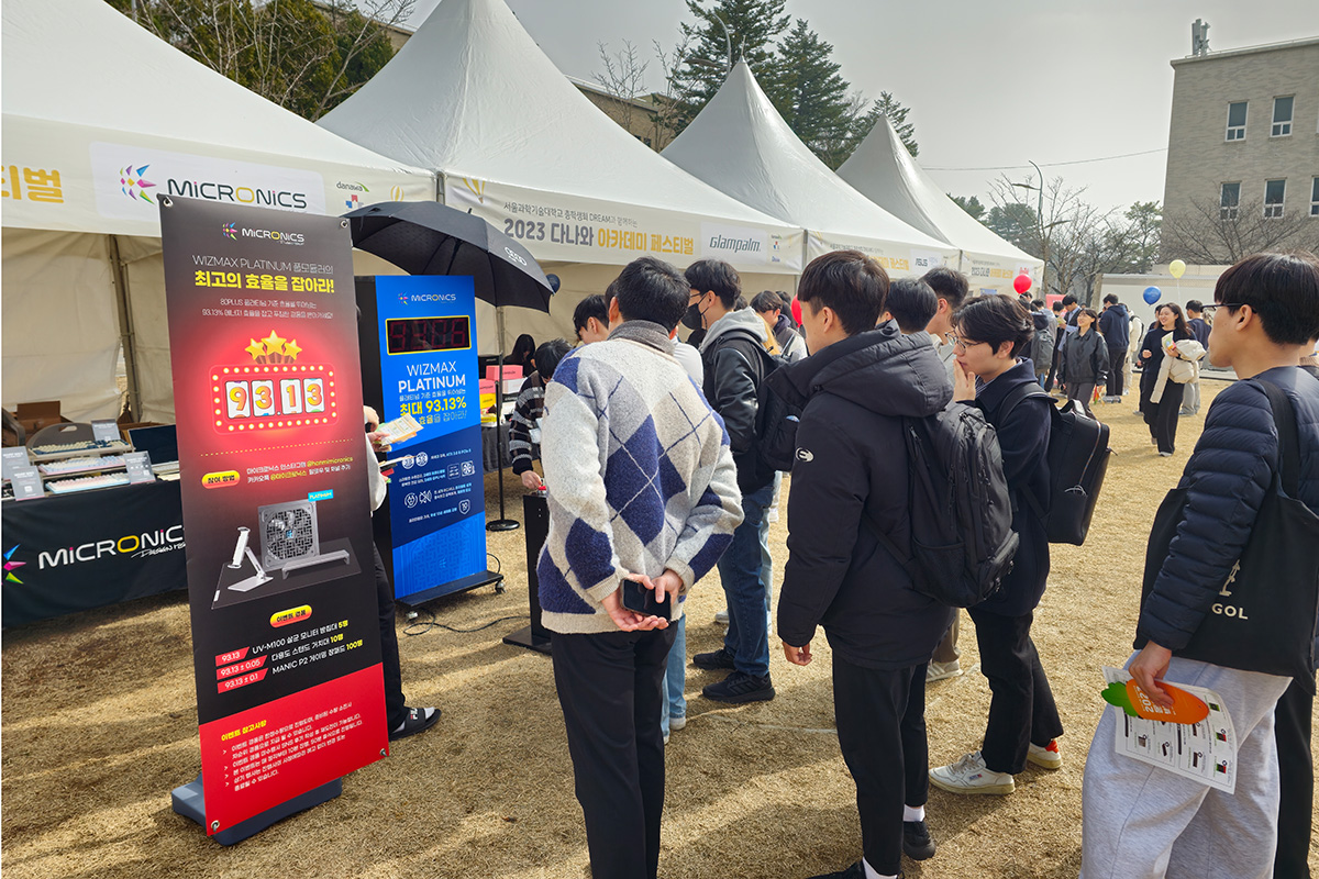 게이밍 기기 디자인·개발·제조 전문기업 한미마이크로닉스(대표: 강현민, 이하 마이크로닉스)는 2023년 3월 9일, 서울과학기술대학교(서울 노원구 소재) 붕어방 잔디밭에서 진행한 ‘2023 다나와 아카데미 페스티벌’에 참가해 게이밍 기어와 PC 케이스, 파워서플라이 등 다양한 제품을 전시했다.