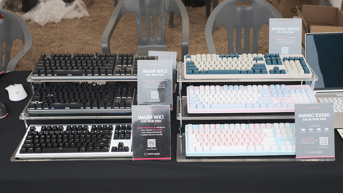 메카(MECHA)·워프(WARP)·모프(MORPH) 게이밍 기어도 주목받았다. 게이밍 키보드는 마이크로닉스가 개발에 참여한 마닉축 스위치를 중심으로 기계식 키보드 특유의 타건감과 청축·적축·갈축 등 취향에 따라 다양한 선택지를 제공한다. 개성을 강조해줄 화려한 LED 효과는 물론이고 게이밍에 필요한 기능을 통해 몰입감 향상에 도움을 준다.