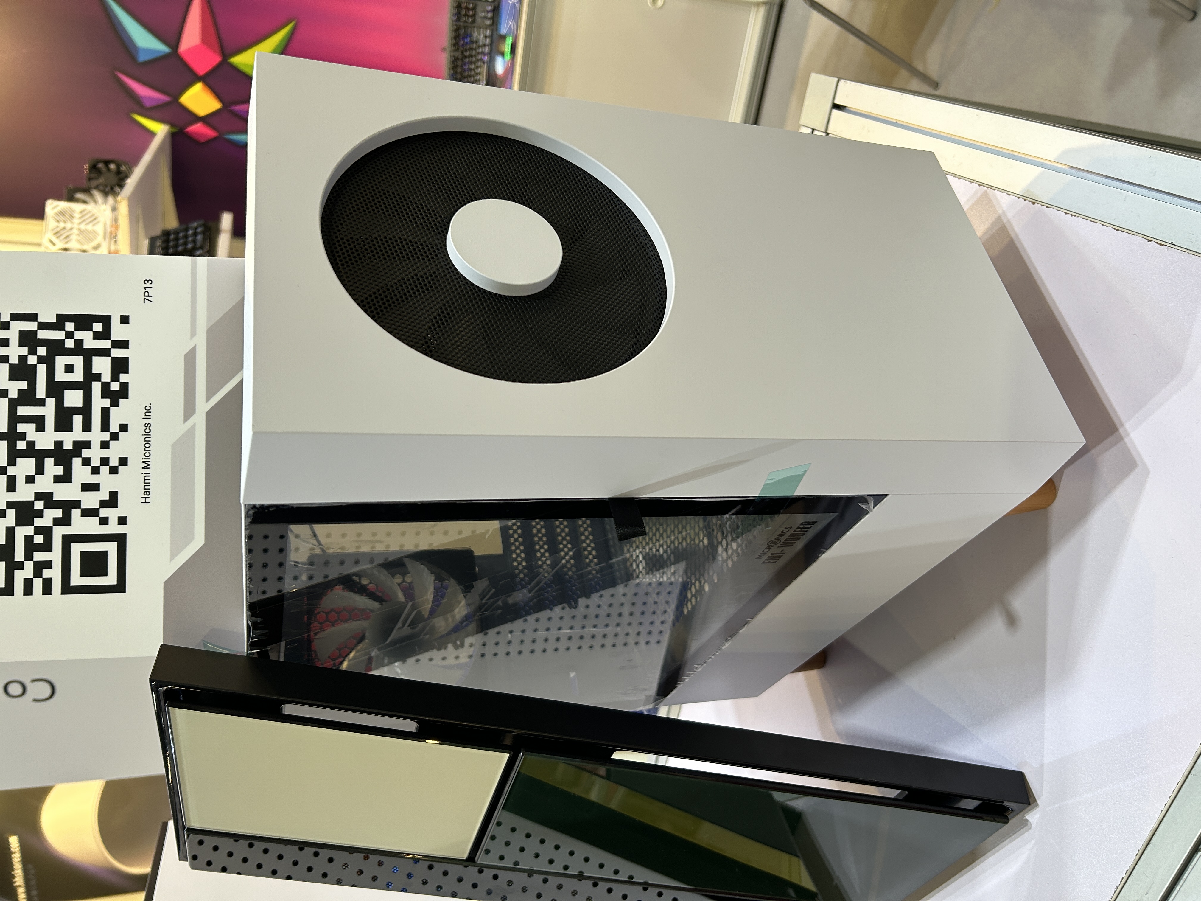마이크로닉스는 자체 설계·디자인 제품 약 30여 개를 전시하고 전 세계 시장 관계자 및 바이어를 만났다. 특히 정밀 가공된 알루미늄을 사용한 프리미엄 기계식 키보드 ‘칼럭스(CALUX)’와 네덜란드 화가인 피에트 몬드리안의 작품에서 영감을 받은 PC 케이스 ‘EH1-몬드리안(MONDRIAN)’이 주목받았다. 뛰어난 출력 효율과 안정성을 갖춘 ‘위즈맥스 플래티넘(WIZMAX PLATINUM)’, ‘아스트로 II 플래티넘(ASTRO II PLATINUM)’ 파워서플라이도 관심을 끌었다.