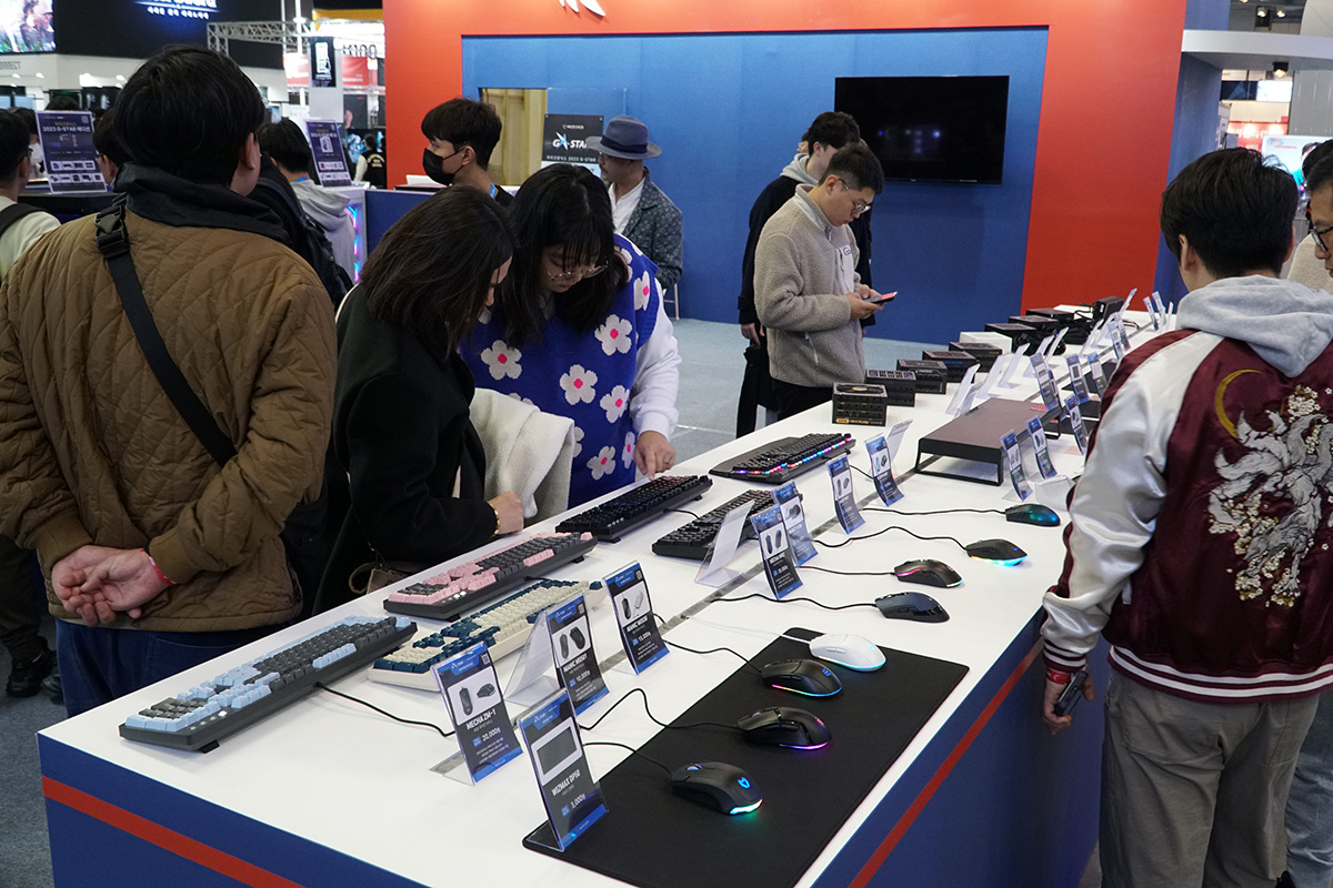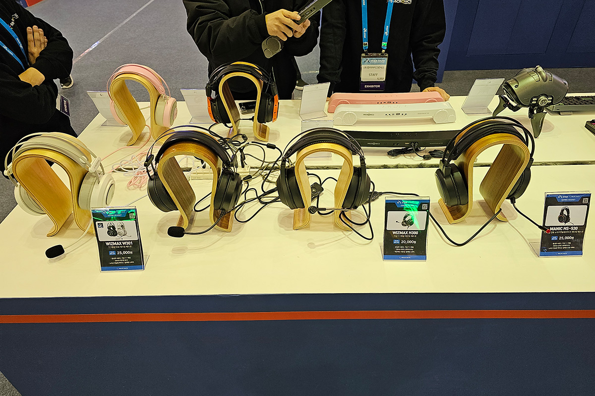 게이밍 기어는 한국e스포츠협회의 공인 e스포츠 용품 인증을 받은 ‘위즈맥스 W101P’ 게이밍 키보드와 ‘위즈맥스 W301’ 게이밍 헤드셋, ‘메카 ZM2’ 게이밍 마우스 등을 중심으로 전시됐으며 마이크로닉스 자체 디자인이 반영된 워프(WARP)ㆍ모프(MORPH)ㆍ메카(MECHA) 브랜드와 마닉(MANIC) 게이밍 기어 브랜드도 자리한다. 무엇보다 럭셔리 기계식 키보드를 표방하며 한창 개발 중인 ‘칼럭스(CALUX)’도 현장에서 만나볼 수 있다.