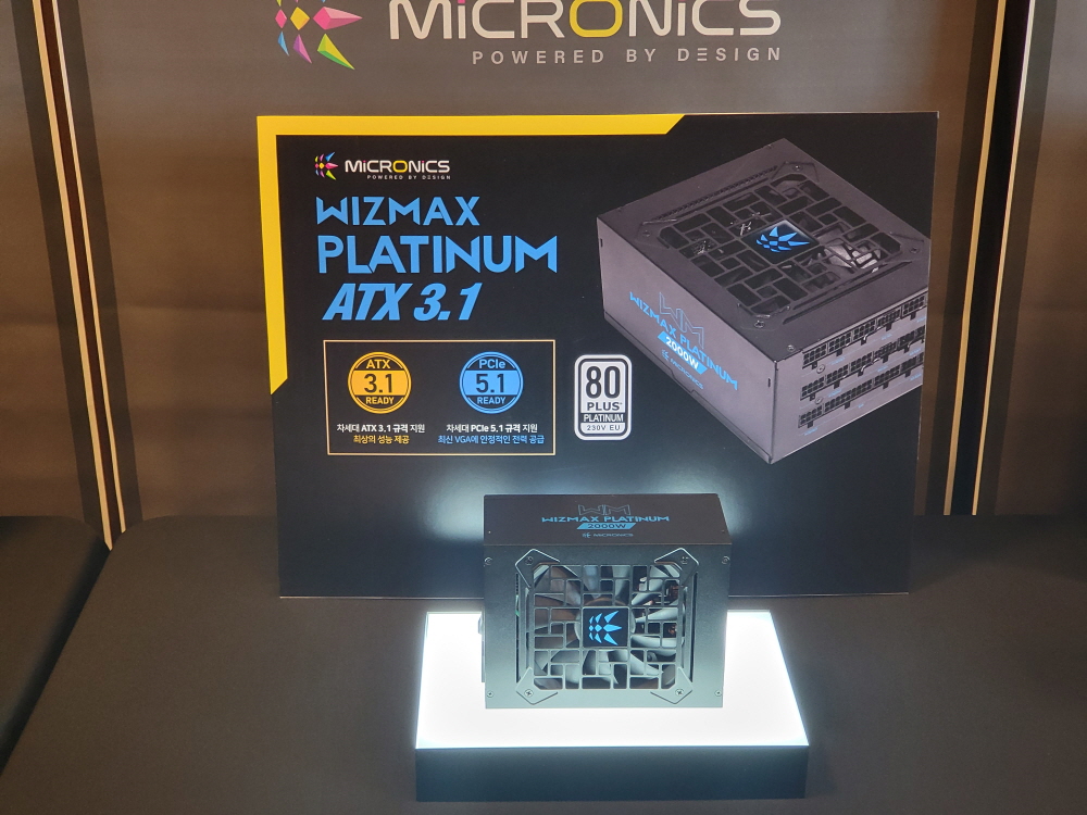 지난해 공개됐던 위즈맥스 플래티넘(WIZMAX PLATINUM) 2000W도 ATX 3.1로 업그레이드됐다. 2000W는 여전히 타 파워서플라이에서도 보기 힘든 초고용량 출력이다. 최대 92% 이상 효율에 부여되는 80 PLUS PLATINUM 인증을 획득했다.