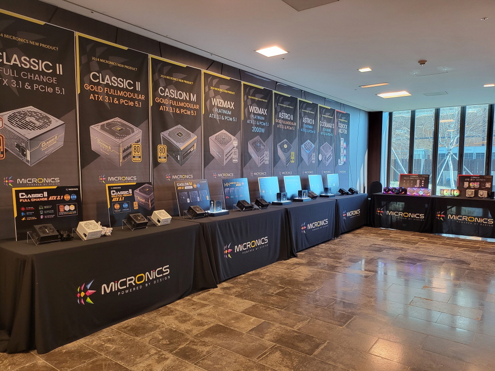 게이밍 기기 디자인·개발·제조 전문기업 한미마이크로닉스(대표: 강현민, 이하 마이크로닉스)는 2024년 3월 21일, 서울 63컨벤션센터에서 ‘2024 마이크로닉스 신제품 발표회’를 열고 파워서플라이, PC 케이스, 게이밍 기어 등 다양한 신제품을 공개했다.