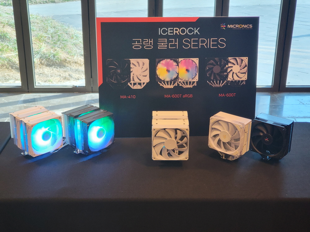 듀얼타워 공랭 쿨러인 아이스락 MA-600T(ICEROCK MA-600T)도 선보였다. TDP 기준 250W 사양 제품까지 대응되는 고성능 공랭 쿨러로 지름 6mm인 구리 히트파이프 6개로 구성됐다. 쿨링팬은 Rifle 베어링 기술이 탑재돼 풍량 및 풍압이 높은 것이 특징이다. 쿨링팬에는 양면 8개의 진동 방지 고무 패드가 부착돼 불필요한 소음 및 진동음을 줄였다.