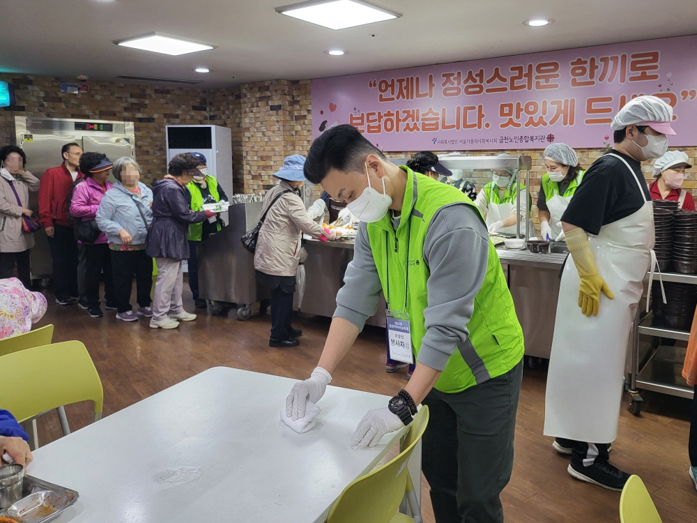 마이크로닉스 직원들은 이날 어버이 선배 밥상 프로그램에 참여해 식당 이용 어르신 720명을 대상으로 식당 청소 및 식기세척 봉사를 진행했다. 식당을 찾은 어르신들이 안전하게 식사할 수 있도록 테이블 정리 및 식기를 세척했다.