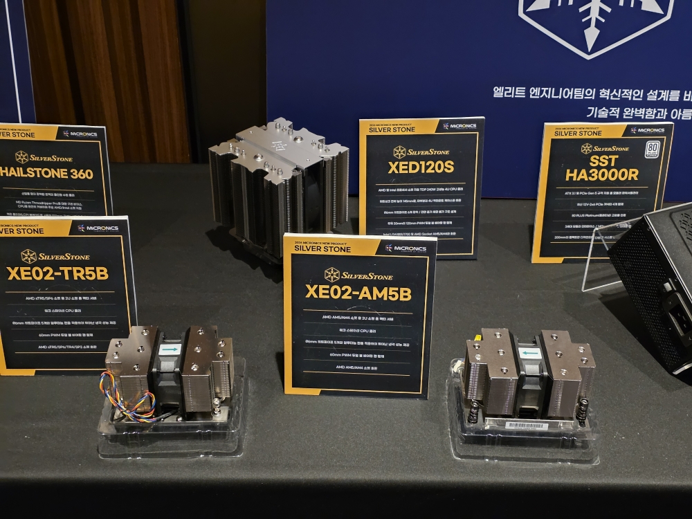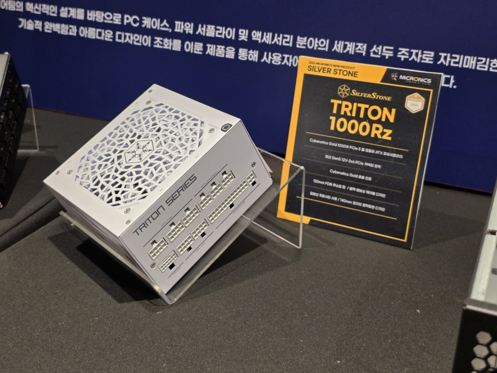 이와 함께 실버스톤은 차세대 전원 솔루션과 서버·워크스테이션용 쿨링 솔루션도 함께 전시했다. ATX 3.1 규격과 PCIe 5.1 12V-2x6 커넥터를 지원하는 풀모듈러 파워서플라이 ‘Triton 1000Rz’, AMD sTR5/SP6 플랫폼을 위한 2U 서버·워크스테이션용 CPU 쿨러 ‘XE02-TR5B’, AM5/AM4 플랫폼을 지원하는 ‘XE02-AM5B’ 등이 소개됐다.