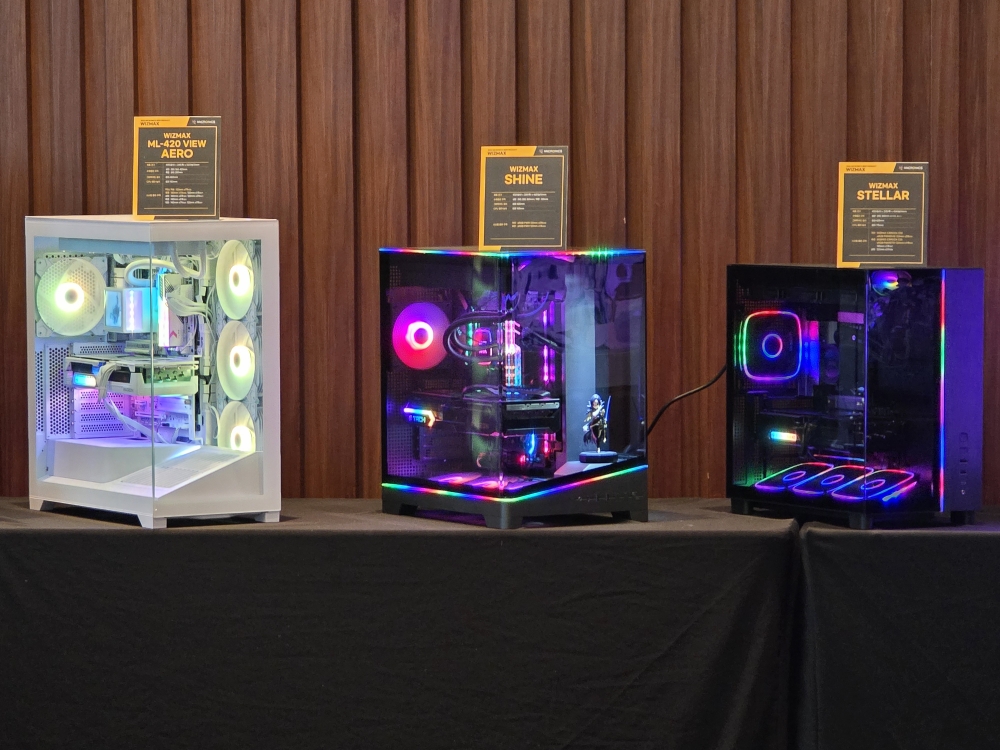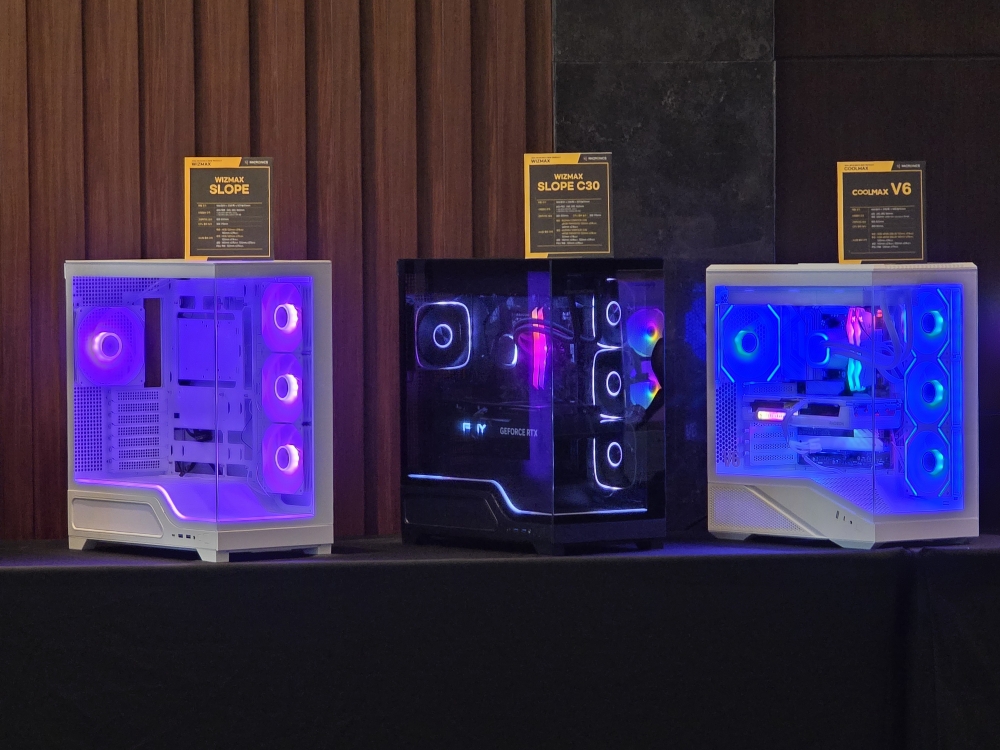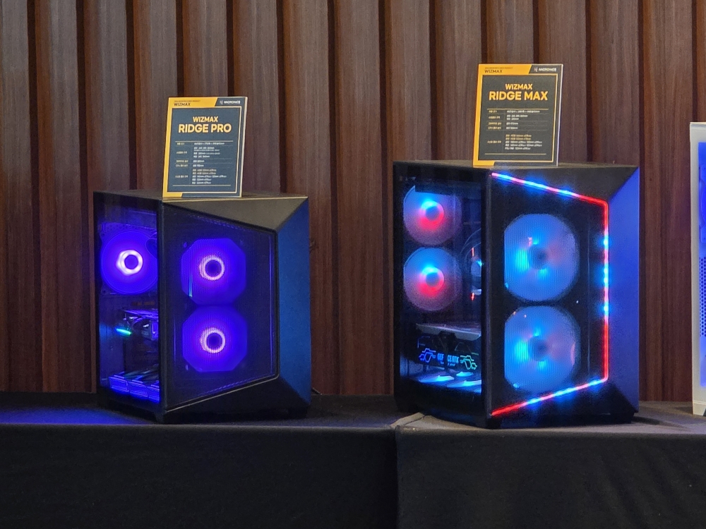 한편, 위즈맥스 SHINE 모델도 함께 공개됐다. 해당 제품은 내부 피규어 전시 공간과 포인트 조명을 적용한 것이 특징으로, 시스템을 활용한 데스크테리어 연출이 가능하다. 전면과 측면을 잇는 일체형 파노라믹 강화유리 디자인을 적용해 개방감을 높인 것도 특징이다. 또한 포고핀(Pogo pin) 방식의 aRGB 탑커버를 적용해 간편한 조명 구성을 지원한다.