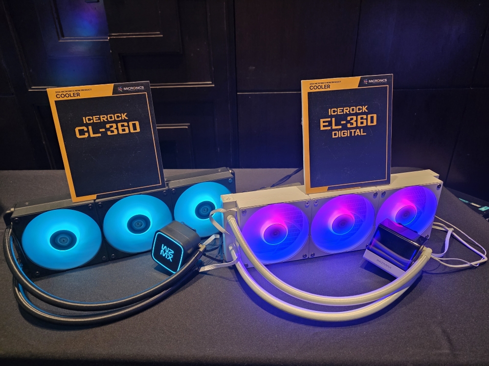 이와 함께 마이크로닉스는 새로운 일체형 수랭 쿨러 라인업으로 ICEROCK CL-360과 ICEROCK EL-360 DIGITAL도 함께 공개했다. 두 제품 모두 360mm 라디에이터와 120mm PWM 팬 3개를 기반으로 공기 흐름에 최적화된 쿨링 성능을 제공하며, 최대 약 2,200RPM 팬 속도와 81.81CFM 풍량을 통해 고성능 시스템에서도 안정적인 열 관리가 가능하도록 설계됐다.