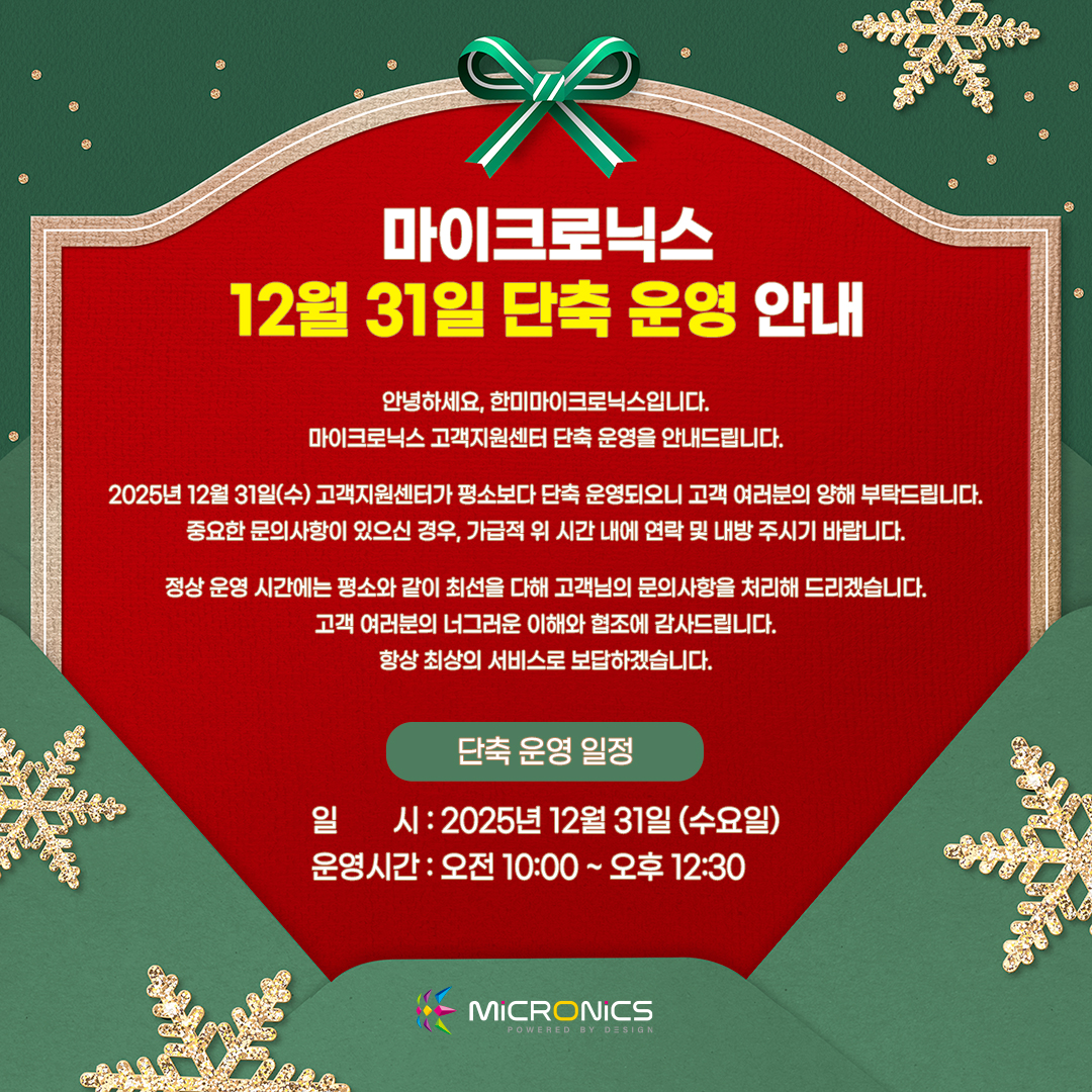 마이크로닉스 고객지원센터 단축 운영을 안내드립니다.