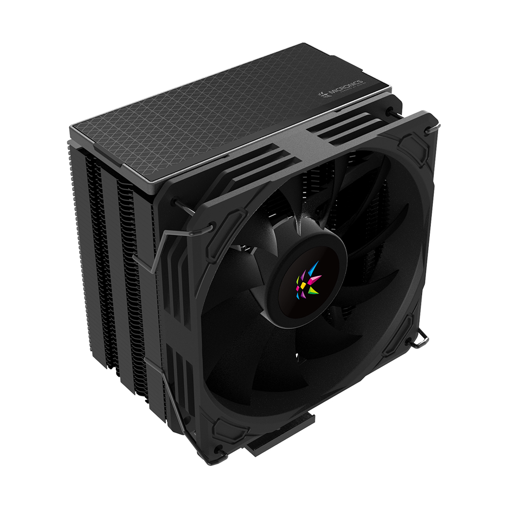아이스락 MA-410은 싱글타워 CPU 쿨러로 TDP(열설계전력) 기준 220W 사양 제품까지 대응한다. 바닥면에는 히트싱크의 구리 히트파이프 4개가 CPU에 맞닿는 HDT(Heat-pipe Direct Touch) 구조를 적용해 CPU의 발열을 빠르게 쿨러로 전달한다. 상단 커버는 다이아몬드 모양의 그라디언트 커버가 적용돼 세련된 디자인을 갖췄다.