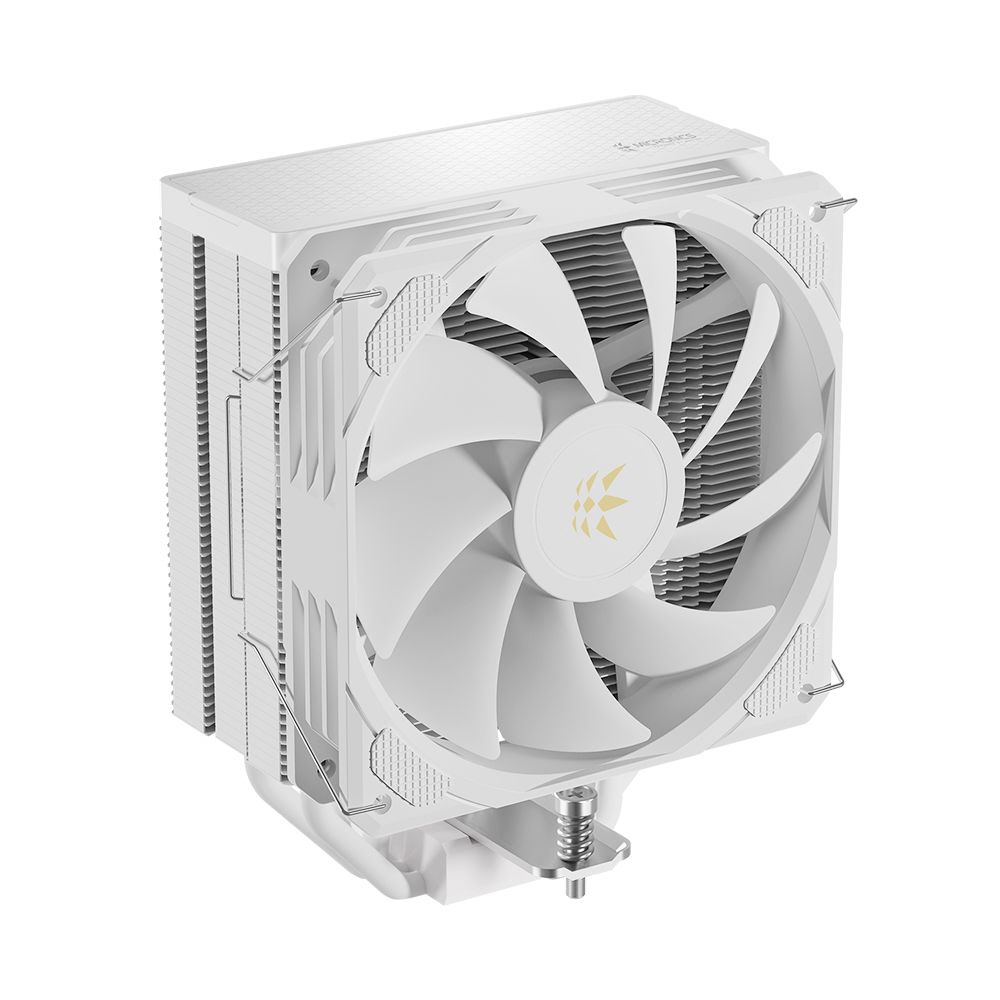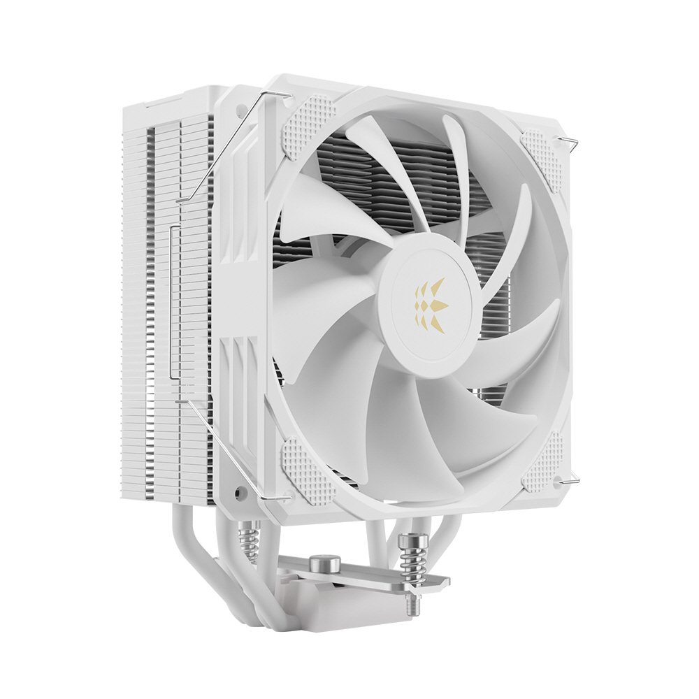 TDP(열설계전력)는 220W 사양 제품까지 대응하며 바닥면에는 히트싱크의 구리 히트파이프 4개가 CPU에 맞닿는 HDT(Heat-pipe Direct Touch) 구조를 적용해 CPU의 발열을 빠르게 쿨러로 전달한다. 상단 커버는 화이트 색상의 다이아몬드 모양 그라디언트 커버로 히트파이프를 가려 세련됐다.
