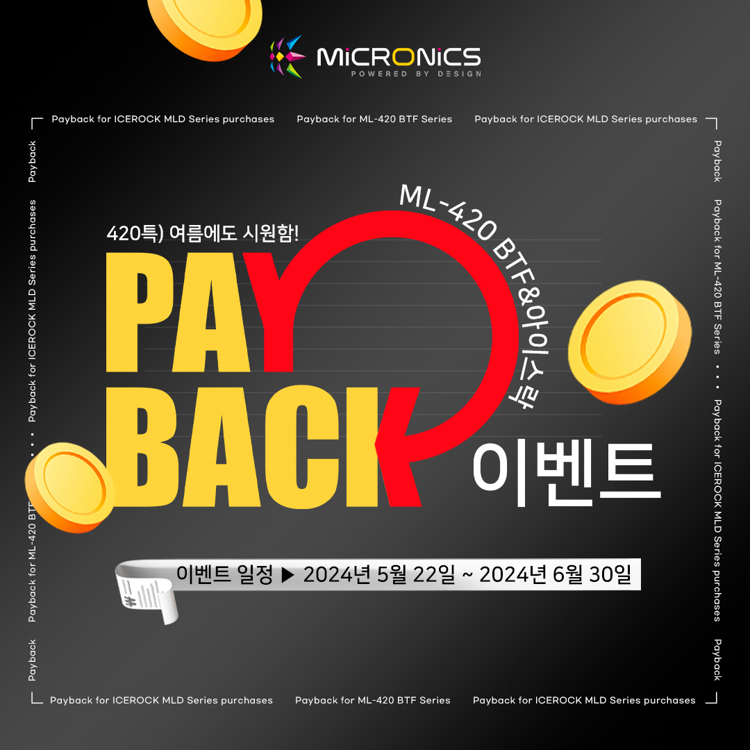 페이백 행사는 5월 22일부터 6월 30일까지 진행된다. 해당 기간 내 ML-420 BTF, ML-420 View BTF와 아이스락 MLD 시리즈를 함께 구매 시 네이버 페이 포인트 쿠폰 최대 5만 원권(아이스락 MLD 360 3만 원, 아이스락 MLD 420 5만 원)이 페이백된다.