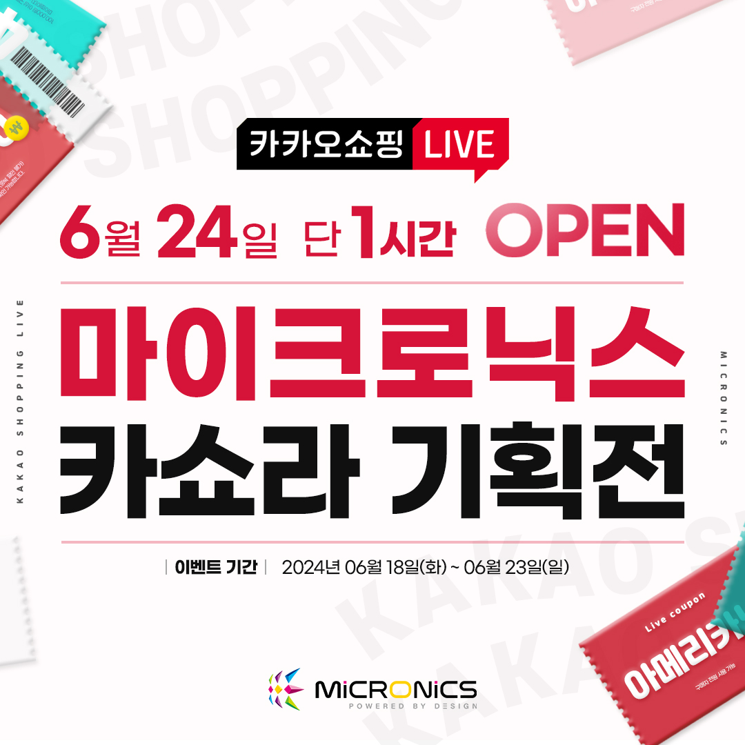 [2024년 6월 21일] 게이밍 기기 디자인·개발·제조 전문기업 한미마이크로닉스(대표: 강현민, 이하 마이크로닉스)는 카카오쇼핑라이브(이하 카쇼라) 기획전을 진행한다.