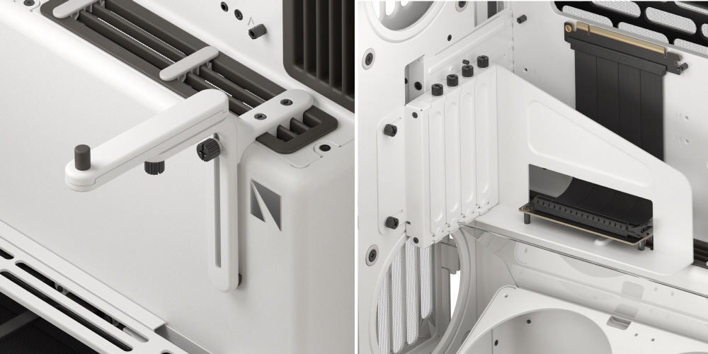 해당 케이스는 블랙과 화이트 두 가지 색상으로 제공되며, 기본 버전과 VGPU 버전 중 선택할 수 있다. 기본 버전에는 사전 설치된 3방향 조절식 그래픽카드 지지대가 포함되어 있어 그래픽카드를 안정적으로 지지하면서도 빌드의 미관을 해치지 않는다. VGPU 버전은 수직 GPU 마운트 브라켓, PCI Express 5.0 x16 라이저 케이블, 강화유리 공기 흐름 가이드가 있는 각진 하단 팬 브라켓이 제공된다.