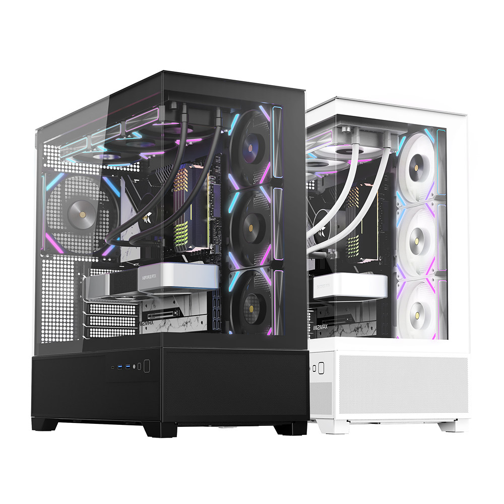 ML-360 VIEW 시리즈는 마이크로닉스가 직접 개발한 프리미엄 HDB 엣지 aRGB 팬이 탑재되어 있어 쿨링 성능과 시각적 효과를 모두 만족시키는 것이 특징이다. WIDE View BTF 모델 역시 여유로운 내부 공간과 BTF 메인보드 지원을 강조하며, View 제품군 전체가 M-ATX 메인보드와 호환되며 최대 360mm 수랭 쿨러 장착이 가능하다.