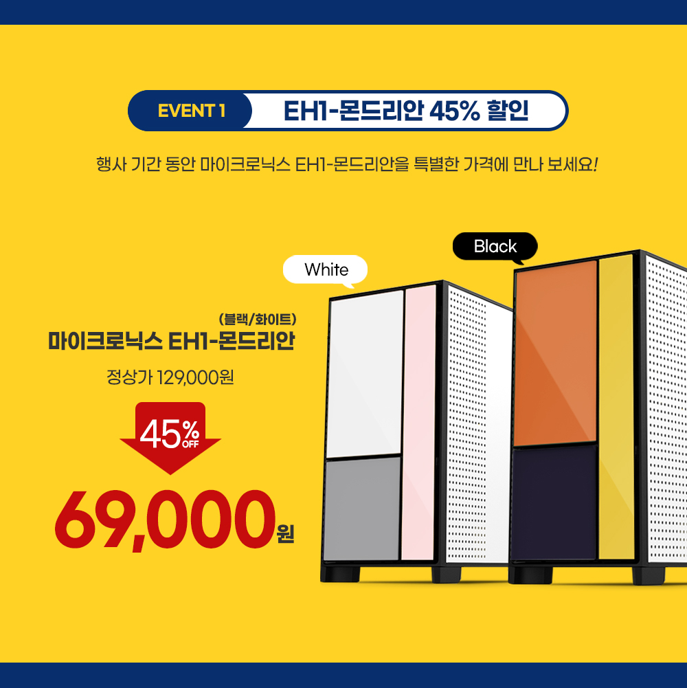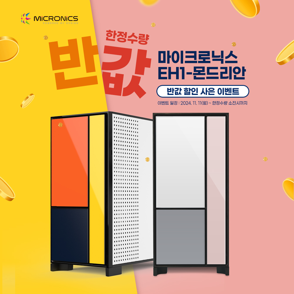 [2024년 11월 12일] 게이밍 기기 디자인·개발·제조 전문기업 한미마이크로닉스(대표: 강현민, 이하 마이크로닉스)는 자사의 PC 케이스 'EH1-몬드리안'에 대한 특별 할인 행사를 진행한다.