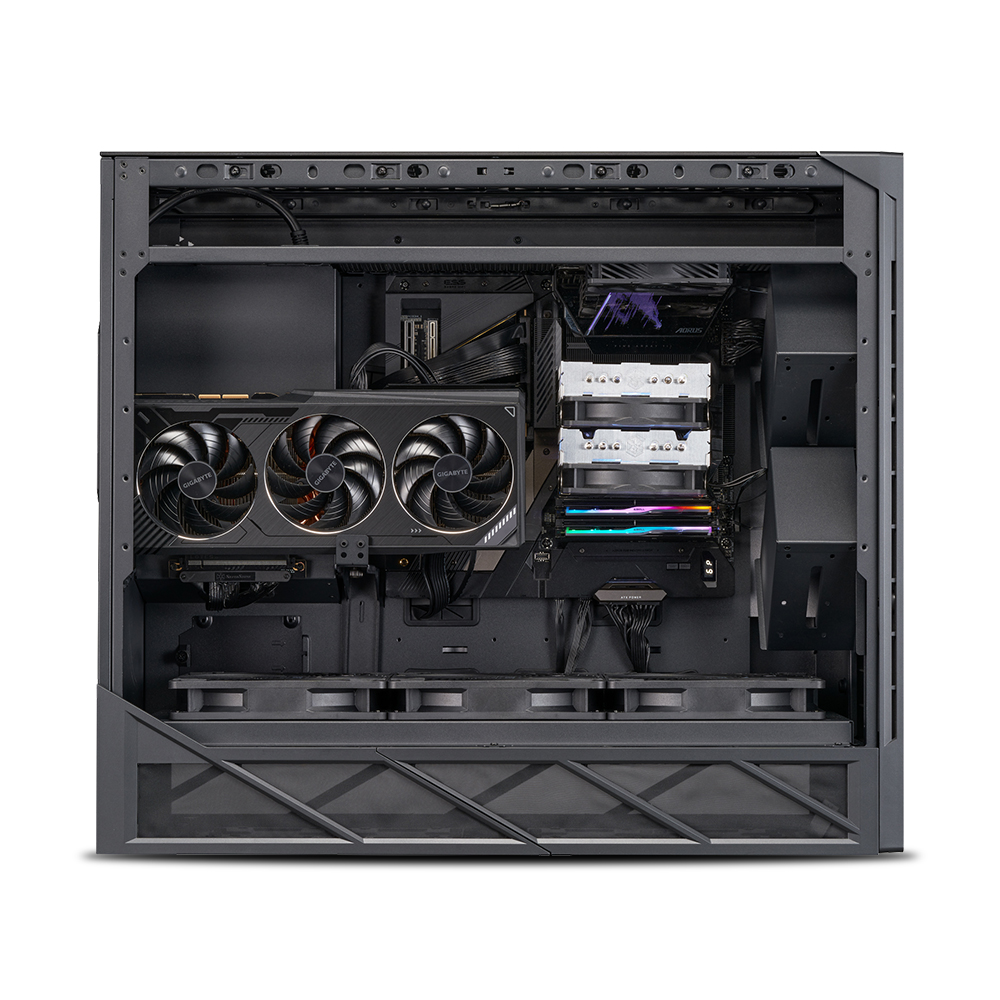 XL-ATX와 SSI-EEB 메인보드를 지원하며, 최대 560mm 크기의 라디에이터 장착이 가능해 고성능 하드웨어에 적합하다. 또한, 후면에는 앞쪽으로 11.3도로 기울어지는 4개의 PCI 슬롯이 있어 그래픽 카드와 프로세서 간의 열 중첩을 최소화한다.