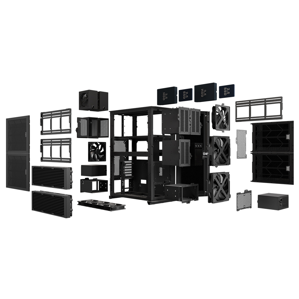 기본 구성으로 180mm 흡기 팬 2개와 140mm 배기 팬 1개를 제공하며, 최대 3개의 360mm 라디에이터를 추가로 지원한다. 듀얼 PSU 구성을 지원해 전력 안정성을 높였다. 전면 I/O는 USB Type-C와 USB 3.0 포트를 제공한다.
