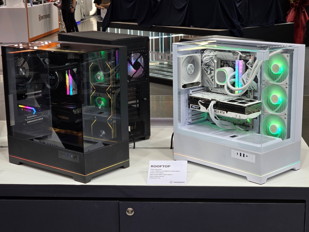 RGB 연출에 특화된 ‘칠 세븐팬(CHILL SEVENFAN)’은 전면 베젤에 세리에이션 패턴을 적용해, 그릴 사이로 퍼지는 RGB 팬의 조명이 은은한 분위기를 연출한다. ‘우퍼 딥톤’은 전면 팬을 기존 160mm에서 140mm로 조정해 균형 잡힌 비율을 구현했으며, 베젤 측면에 벤트 홀 디자인을 적용해 듀얼 팬 설치도 가능하다. ‘루프탑’은 상단 패널을 투명 구조로 설계해, 위에서 바라보는 조명 효과와 내부 부품 구성이 한눈에 들어오는 것이 특징이다.