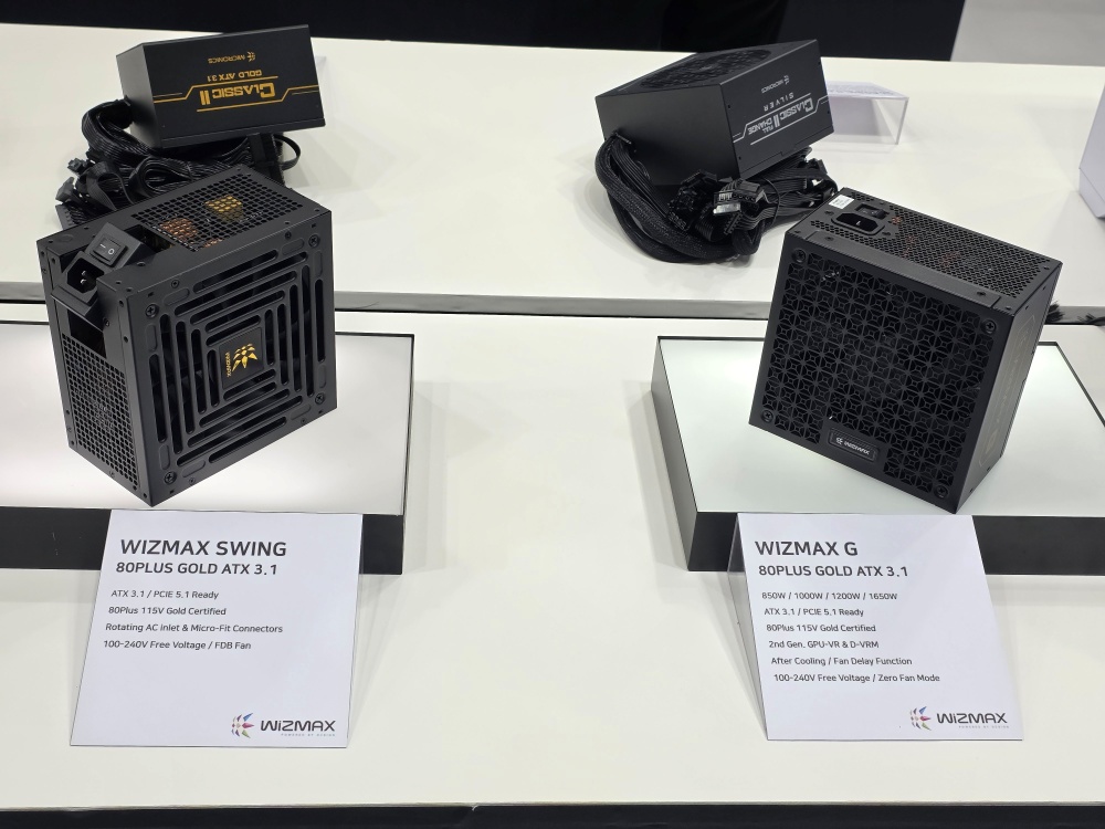 파워서플라이 부문에서는 최신 ATX 3.1 규격과 PCIe 5.1(12V-2x6) 인터페이스를 지원하는 프리미엄 PSU ‘WIZMAX G’ 시리즈가 주목을 받았다. 80PLUS 골드(115V 기준) 인증을 획득한 이 제품은 고성능 시스템을 위한 안정적인 전력 공급과 함께, 자동화 제조 공정을 통해 품질 오차를 최소화한 점이 특징이다.