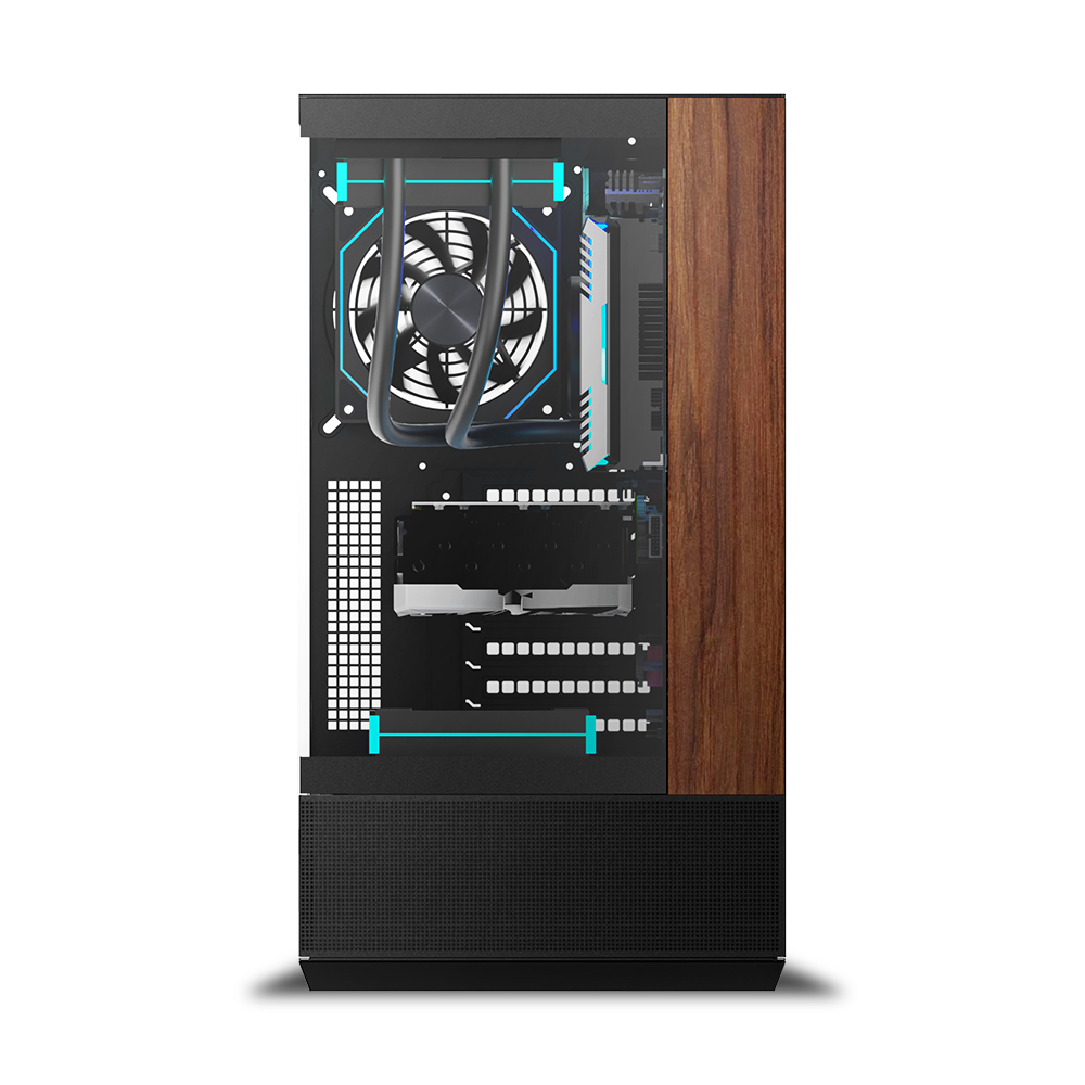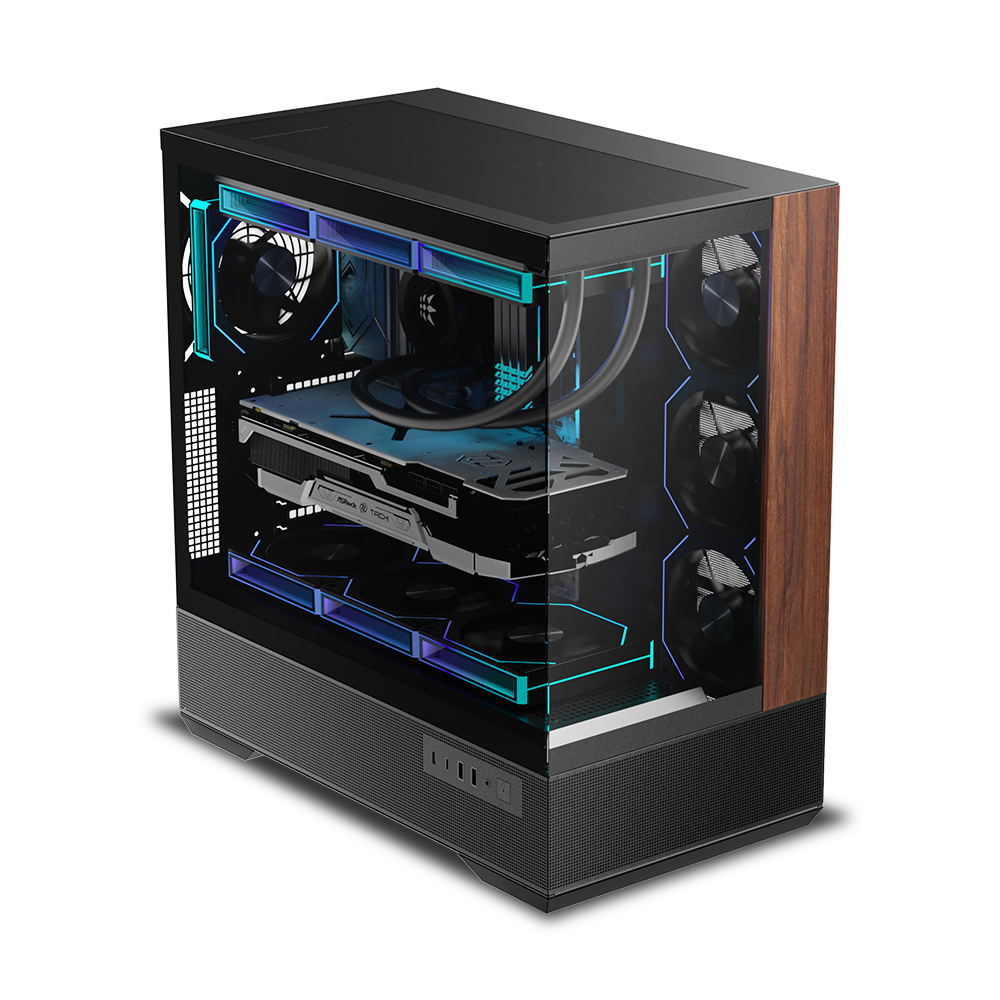 우드리안 울트라는 시리즈 특유의 월넛 목재 패널과 풀 파노라믹 강화유리 디스플레이를 채택해 감성적인 외관을 유지하면서도, 고사양 시스템을 위한 설계를 반영한 점이 특징이다.