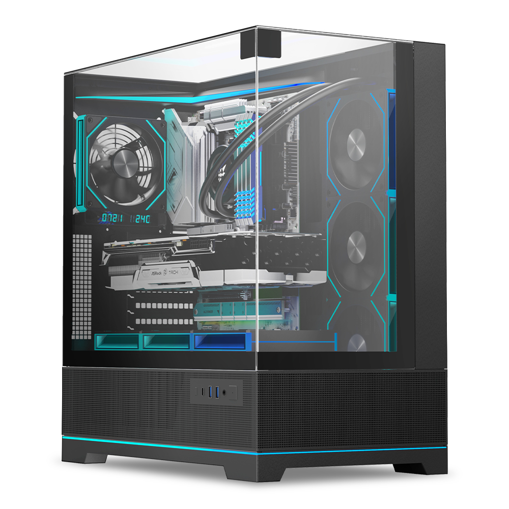 좌우 사이드 패널은 핸드 나사와 마그네틱 트리플 락 설계로 손쉽게 탈부착할 수 있으며, 내부는 여유로운 선정리 홀을 확보해 깔끔한 조립을 돕는다. 책상 위에 올려두었을 때 편의성을 높인 하단 I/O 설계도 적용됐다. USB 3.2 Gen2x2 Type-C 포트도 탑재돼 고속 데이터 전송을 지원한다.