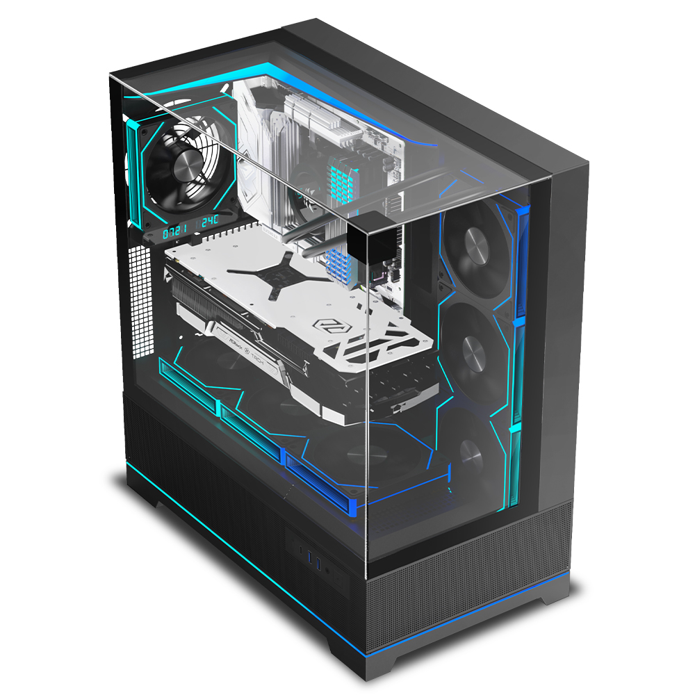 최대 420mm 길이의 그래픽카드, 360mm 수랭 쿨러, 180mm 공랭 쿨러를 지원해 고사양 시스템 구성에 최적화되어 있으며, 내부 공간은 최대 180mm 두께의 VGA도 무리 없이 장착할 수 있어 PCIe 5.1 커넥터 연결 시 케이블 꺾임을 방지할 수 있다.