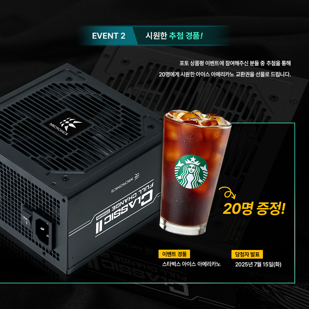 행사 기간은 2025년 6월 16일부터 7월 13일까지며, 해당 기간 동안 클래식 II 풀체인지 스탠다드 ATX 3.1 시리즈를 구매한 고객이라면 누구나 참여할 수 있다. 제품 구매 후 각 쇼핑몰에 포토 상품평을 등록하면 네이버페이 포인트 교환권이 지급되며, 용량별로 지급 금액은 다음과 같다.