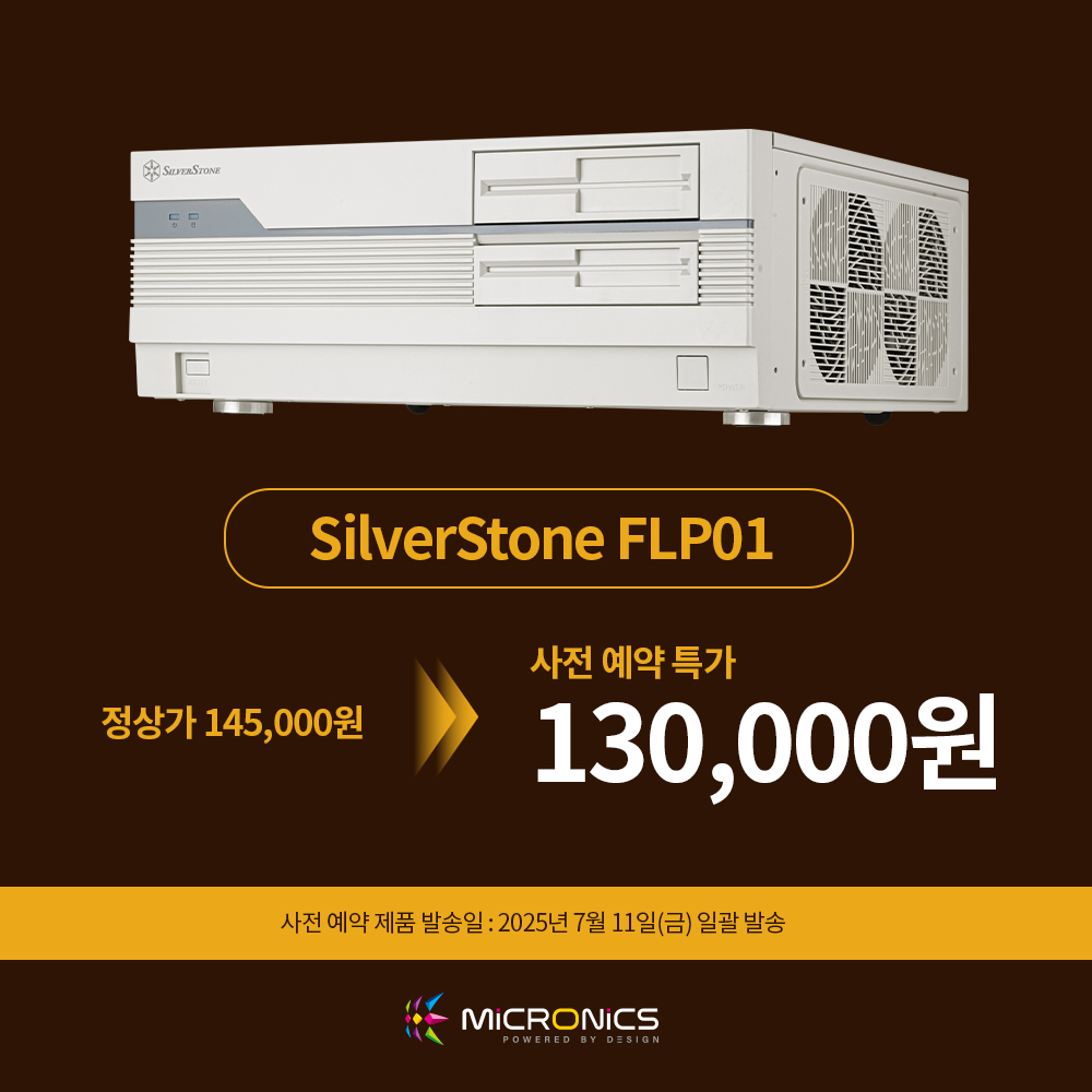 [2025년 7월 4일] 게이밍 기기 디자인·개발·제조 전문기업 한미마이크로닉스(대표: 강현민, 이하 마이크로닉스)는 80~90년대 데스크톱 PC 감성을 현대적으로 재해석한 PC 케이스 ‘SilverStone FLP01(이하 실버스톤 FLP01)’을 정식 출시하고, 이를 기념해 예약 특가 행사를 진행한다.