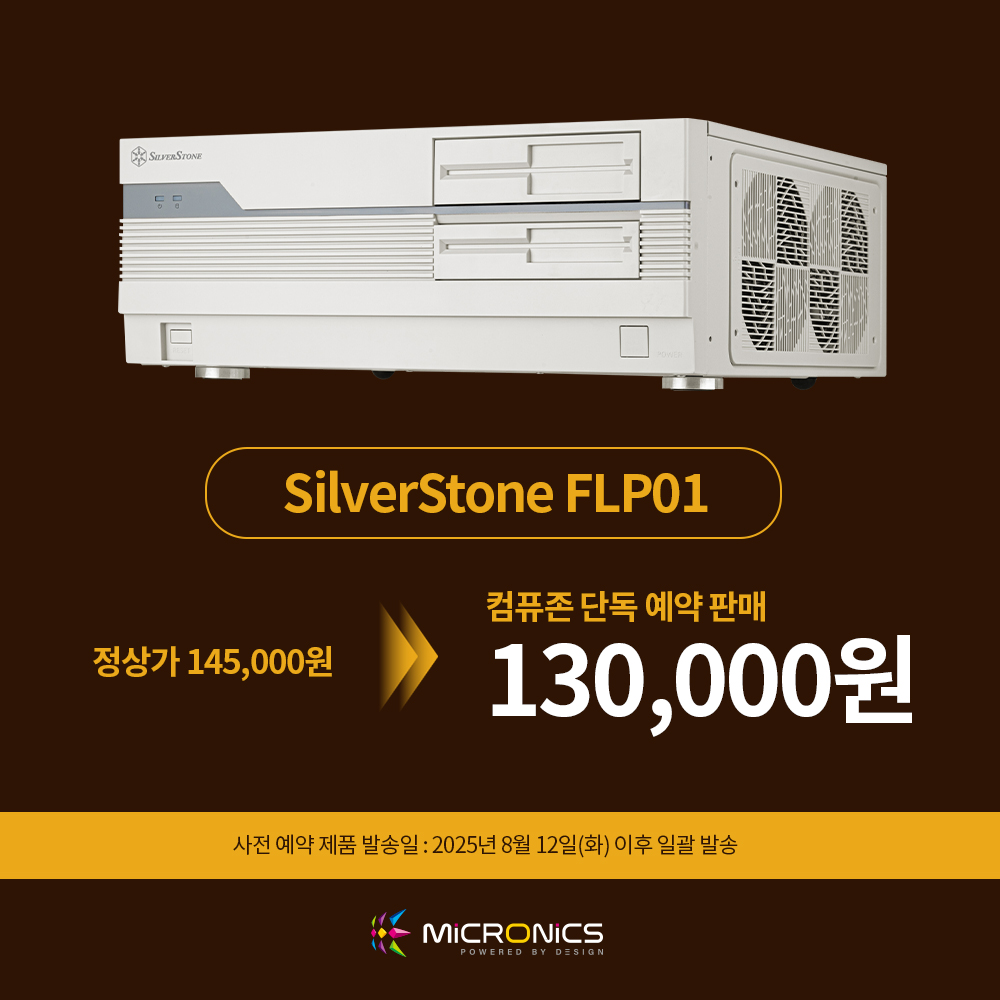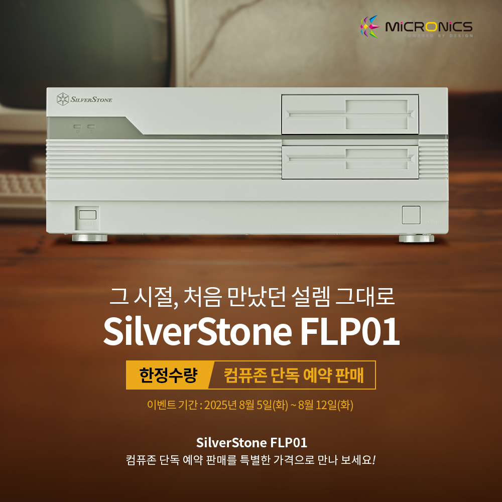 [2025년 8월 5일] 게이밍 기기 디자인·개발·제조 전문기업 한미마이크로닉스(대표: 강현민, 이하 마이크로닉스)가 80~90년대 데스크톱 PC 감성을 현대적으로 재해석한 PC 케이스 ‘SilverStone FLP01(이하 실버스톤 FLP01)’의 컴퓨존 예약판매를 진행한다.