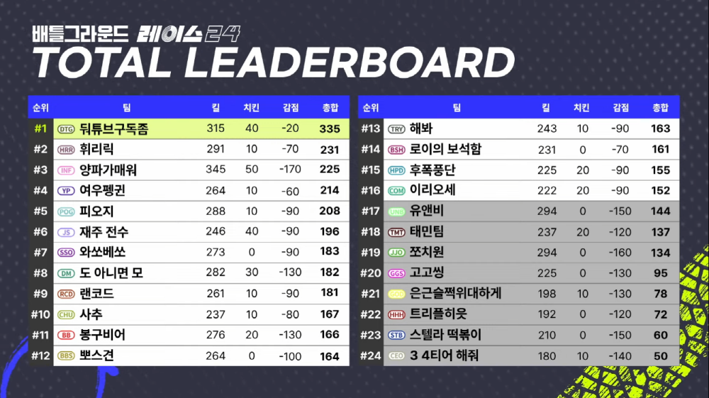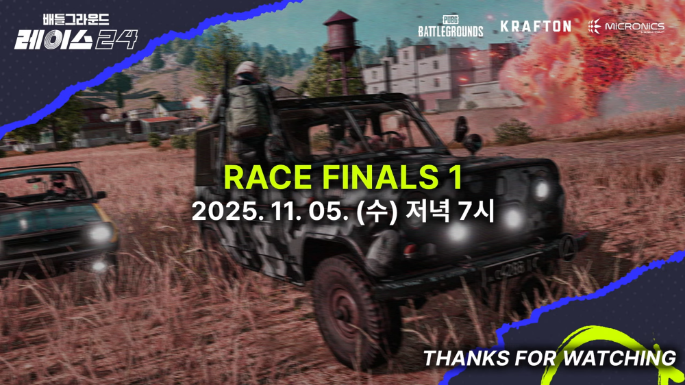 ‘PUBG: 배틀그라운드 레이스 24’는 11월 5일부터 9일까지 결승전 RACE FINALS를 이어가며 대단원의 막을 내릴 예정이다. 모든 경기는 SOOP, 치지직, PUBG 공식 유튜브 채널을 통해 생중계된다.