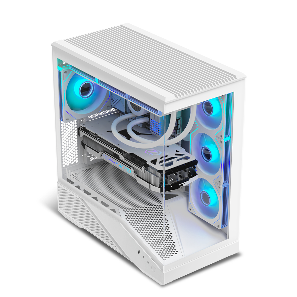 기본 장착된 HDB aRGB 인피니티 팬 4개(측면 120mm 3개, 후면 140mm 1개)를 통해 화려한 조명 효과와 안정적인 냉각 성능을 갖췄다. 최대 8개의 쿨링팬 장착이 가능하며, 측면·상단 360mm 규격의 수랭 쿨러와 180mm 높이의 공랭 쿨러까지 폭넓게 지원해 다양한 쿨링 구성에 대응한다. 특히 후면 140mm 팬은 최대 64.97CFM 풍량을 제공해 배기 효율을 더욱 높였다.